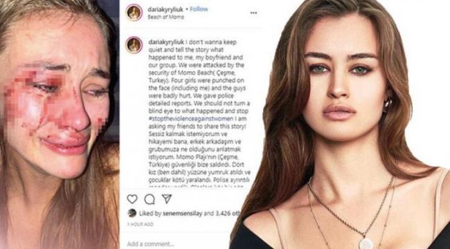 Dünyaca ünlü Ukraynalı top model Daria Kyryliuk kendisinin arkadaşlarının İzmir’in Çeşme ilçesindeki Momo Beach adlı eğlence mekanının güvenlik görevlileri tarafından darp edildiğini öne sürdü.