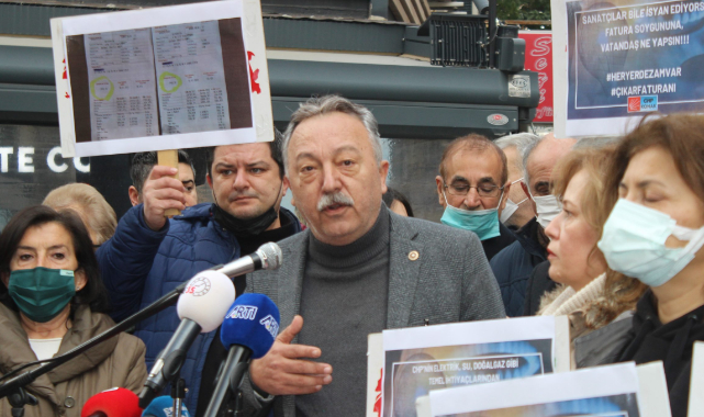 Cumhuriyet Halk Partisi (CHP) İzmir’de 30 ilçede ve Türkiye’de eş zamanlı 81 ilde fatura zamlarına tepki göstermek amacıyla toplandı. İlçe merkezlerinde gerçekleştirilen protestolarda CHP İlçe Başkanları ortak basın açıklamasını okudu. Yapılan açıklamada, halkın her geçen gün yoksullaştığına dikkat çekilerek, elektrik faturaları yakıldı.Öte yandan basın açıklamalarına CHP İzmir Milletvekili Tacettin Bayır’da katıldı. Yaşanan süreçte korona virüs salgınının ardından Türkiye ekonomisinin özellikle kaldıramayacağı bir yük içine girdiğini belirten ve basın açıklamasını okuyan CHP Konak İlçe Başkanı Akın Küçükoğullarından,son dönem plansızlık ve öngörüsüzlük nedeniyle yoksullukla mücadele eden milyonlarca vatandaşın ciddi anlamda zorlandığını ifade etti. Planlama olmadan yönetimin başarısız olduğunu vurgulayan ve devlet yönetiminde bilimin zorunluluk olduğunu sözlerine ekleyen Küçükoğulları, “Bu koşulları yerine getirmekten aciz olan, liyakatsiz ve adaletsiz düzenin kurucuları halkımızı sömürerek günlük elektrik tüketimi yüz bin lirayı bulan saraylarda yaşamaktadır. Elektrik, doğalgaz ve akaryakıt fiyatlarının artık mücadele edilemez boyutlara geldiğini görmemek için kör olmak, yaşam için elzem olan enerji fiyatlarının altında ezilen, yoksullaştırılan halk yığınlarının feryadını duymamak için ise sağır olmak gerekli. İşte tam da bu noktada görmeyen, duymayan AK Parti ve Cumhurbaşkanı Erdoğan’a buradan sesleniyoruz; Enerji fiyatlarına 2022 itibariyle getirilen zamları geri alın” dedi.‘HAKSIZ FATURALANDIRILMIŞ’