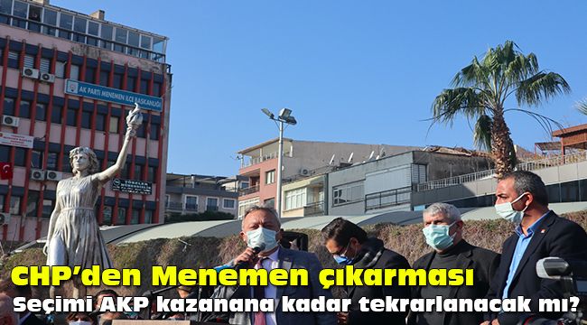 Aylin BAYRAM/ İZMİR GÜNDEMİ-Tutuklanarak cezaevine gönderilen menemen Belediye Başkanı Serdar Aksoy'un yerine, belediye meclisinde yapılan seçimde eşitlik bozulmayınca Deniz Karakurt'un başkanvekili seçildiği kura mahkeme tarafından iptal edildi. Seçimin iptal edilmesi sebebiyle chp Menemen'de geniş katılımlı bir basın açıklaması gerçekleştirildi. Açıklamaya CHP İzmir İl Başkanı Deniz Yücel, İzmir Büyükşehir Belediye Başkanı Tunç Soyer, Milletvekilleri, Belediye Başkanları, ilçe başkanları ve çok sayıda partili katıldı.
