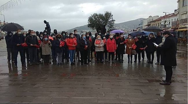 Dün Çanakkale Zaferi’nin 106.yılını kutladıklarını, başta Gazi Mustafa Kemal Atatürk ve silah arkadaşları olmak üzere vatan uğruna canını feda etmiş tüm şehitleri saygı ve minnetle andıklarını belirterek konuşmasına başlayan CHP Foça İlçe başkanı Ayla Yılmaz, Andımız’ın okullarımızda 80 yıldır okunduğunu hatırlattı. Ayla Yılmaz; “ Andımız dönemin Milli Eğitim Bakanı Reşit Galip tarafından 1933 yılında yazılmış, 23 Nisan 1933’te bir okulda yapılan tören sırasında ilk defa okunmuş, Cumhuriyetin 10.yılından itibaren okullarda öğrenciler tarafından okunmaya başlanmıştır. 80 yıldır gururla okunan Andımız 8 Ekim 2013 tarihinde İlköğretim Kurumları Yönetmeliği’nde yapılan değişiklik sonucunda kaldırılmıştır. Andımız bakanlığın ifade ettiği gibi, zorla ezberlettirilen bir metin değil, coşkuyla söylenen ve yaşamın her aşamasında içselleştirilmesi gereken ilkeler bütünü olarak görülmelidir. Andımız herhangi bir etnik kökeni dışlamaz. Kimseyi ayrıştırmaz. Aksine ülke bütünlüğünü, vatan sevgisi ve Cumhuriyet ideallerini barındırır. Sevgi saygı kavramlarını içselleştirir. Çağdaş medeniyetler seviyesinin üzerine çıkma hedefini simgeler. Andımızın her kelimesi ve Atatürk sevgisi bu milletin ruhundan silinmeyecektir. Andımız okullarımızıa geri dönmelidir. “ dedi.