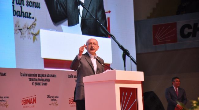 Cumhuriyet Halk Partisi'nde (CHP) yerel seçim hazırlıkları tam gaz devam ederken, İzmir büyük bir buluşmaya sahne oldu. Halkpınar Spor Salonu'nda CHP Genel Başkanı Kemal Kılıçdaroğlu'nun aday tanıtım toplantısı gerçekleştiriliyor. CHP Lideri Kılıçdaroğlu İzmir mesaisi için öğlen saatlerinde hava yoluyla İzmir'e geldi. Kılıçdaroğlu'nu ve kurmaylarını Adnan Menderes Havalimanı'nda partililer karşıladı. Kılıçdaroğlu buradan direkt olarak Halkapınar Spor Salonu'na geçti. CHP Lideri salonda büyük sevgi gösterileriyle karşılandı. Programda kürsüye de bir alkış tufanı eşliğinde çıkan CHP Genel Başkanı'nın konuşmasına İzmir Büyükşehir Belediye Başkanı Aziz Kocaoğlu'na yaptığı övgü seli damga vurdu. Kılıçdaroğlu ayrıca Başkan Kocaoğlu'nu ayakta alkışlatırken, hükümetin başlattığı tanzim satış uygulamasını da Kocaoğlu'nun kentte hayata geçirdiği kırsal kalkınma programlarını örnek göstererek eleştirdi. İZMİR MİLLETVEKİLİ OLMAKTAN GURUR DUYUYORUM Konuşmasına “İzmir Milletvekili olarak bana bu onuru yaşattığınız için İzmirlilere yürekten teşekkür ederim” diyerek başlayan Kılıçdaroğlu, İzmir Türkiye’nin gözbebeği bir kent. Demokrasinin kalesi... Uygarlığın kalesi... İzmir 8 bin 500 yıllık bir tarihi bağrında taşıyan bir kent. O nedenle İzmir milletvekili olmanın onurunu ve gururunu taşıyorum” dedi. Kılıçdaroğlu, "Ünlü edebiyatçı Victor Hugo İzmir için "İzmir bir prensestir, mutlu ilkbaharlar onun çağrısına cevap verir” der. Martın sonu bahar derken bunu tekrarlamış oluyoruz. Ama bahar sadece İzmir’e değil tüm Türkiye’ye gelmeli… Tüm ülkeye bahar ve barış gelmeli…" diye konuştu. AYAKTA ALKIŞLATTI CHP Lideri konuşmasında partinin yeniden aday göstermediği İzmir Büyükşehir Belediye Başkanı Aziz Kocaoğlu'na övgü yağdırdı. "İzmir’de büyük hizmetler yapıldı. O hizmetleri yapan isim aramızda... Sayın Aziz Kocaoğlu" diyen Kılıçdaroğlu salona İzmir Büyükşehir Belediye Başkanı'nı ayakta alkışlattı. Kocaoğlu salonu "İzmir seninle gurur duyuyor" sloganları arasında selamladı. CHP Lideri konuşmasına şöyle devam etti: 397 yıl hapisle yargılandı ama diz çökmedi, boyun eğmedi. Tüm baskılara rağmen İzmir’e hizmet etti, kimsenin yapmadığı projelere imza attı. İstanbul ve Ankara’nın iktidar desteğine rağmen yapamadığı metroyu tek başına hayata geçirdi. Dolayısıyla Aziz Kocaoğlu sadece bir belediye başkanı değil aynı zamanda inançlı bir mücadele insanıdır. GELECEKSİNİZ KOCAOĞLU’NDAN DERS ALACAKSINIZKılıçdaroğlu hükümetin başlattığı tanzim satış uygulamasını da Kocaoğlu'nun uygulamalarını överek eleştirdi. Kılıçdaroğlu, "Bağımsız Kentler Konferansı'nda tarımda İzmir Büyükşehir'in yaptığı örnek olarak tüm dünyaya gösterdiler. Şimdi tanzim satış diyorlar, onlar 1970'lerde kaldı. 2019 yılındayız, ne yapacaklarını bilmiyorlar. Kentle kır arasındaki ilişkiyi nasıl yapmak istiyorsanız geleceksiniz Aziz Kocaoğlu'ndan ders alacaksınız. O size bütün ayrıntıları anlatacak. Kırsalla kent arasında sağlıklı bir ilişki kuracaksınız" dedi. CHP Lideri ayrıca "12 maddelik bir yerel yönetim bildirisi hazırladık. Tüm bu 12 madde Aziz Kocaoğlu’nun İzmir’de hayata geçirdiği maddelerdir. Bu nedenle İzmir’i önemsiyoruz" dedi. ZEYBEKCİ İÇİN İTHAL ADAY ÇIKIŞI! Kılıçdaroğlu AK Parti’ye de İzmir Büyükşehir Belediye Başkan Adayı Nihat Zeybekci üzerinden gönderme yaptı. Kılıçdaroğlu, “İthal aday getirdiler. İthal belediye başkanıyla İzmir yönetilir mi? İthal bir belediye başkanıyla İzmir yönetilemez. İzmir’i yönetecek kişi İzmir kültürüne sahip olması lazım. İzmirli olması gerek” dedi.BÜTÜN SEÇMENLERLE İTTİFAK YAPIYORUZ“Biz sandıkta bütün seçmenlerle ittifak yapıyoruz” diyen Kılıçdaroğlu şöyle devam etti: AK Partili kardeşlerime de sesleniyorum. Geleceksin CHP’ye oy vereceksin ülkeyi sefaletten kurtaracaksın aydınlığa çıkaracaksın. Sizlere söz veriyorum. CHP’li belediyelerin olduğu hiçbir yerde yatağa çocuklar aç girmeyecek. Kılıçdaroğlu'nun konuşmasının ardından başta İzmir Büyükşehir Belediye Başkan Adayı Tunç Soyer olmak üzere CHP'nin tüm İzmir adayları, Büyükşehir Belediye Başkanı Aziz Kocaoğlu ve CHP İl Başkanı Deniz Yücel kürsüye çıkarak salonu selamladı. İKİ TRANSFERE ROZET TAKTI Öte yandan törende CHP Genel Başkanı Kılıçdaroğlu, Bayraklı'da yapılan iki transfere de rozet taktı. 2014 yılında yapılan yerel seçimlerde AK Parti'nin Belediye Başkan Adayı olan İsmail Sarı ve MHP Belediye Başkan Adayı olan Mehmet Topbaş Kılıçdaroğlu'nun taktığı rozetle resmen CHP'ye geçti. YÜCEL’DEN AK PARTİ’YE ‘İTHAL ADAY’ GÖNDERMESİ VE KILIÇDAROĞL’UNA 30+1 SÖZÜAday tanıtım toplantısında kürsüye ilk çıkan isim CHP İzmir İl Başkanı Deniz Yücel oldu. Yücel konuşmasında AK Parti iktidarına ve Cumhur İttifakı’nın İzmir Adayı Nihat Zeybekci’yi hedef aldı. Yücel, İzmir’de yerel seçimlerde 30 +1 sözü verdi.Yücel şunları söyledi:Adaylarımıza sadece Cumhuriyet Halk Partisi’nin adayları demiyoruz. İzmir’in adayları diyoruz. İzmir’in yetiştirdiği ekmeğini İzmir’de kazanan, İzmir’in sokaklarını karış karış bilen insanlarla karşınıza çıkıyoruz. Başkaları gibi ithal isimlerle karşınıza çıkmıyoruz.Adaylarımız İzmir duruşuna sahip isimler. Ne demek İzmir duruşu. Aydın, demokrat, Atatürk sevdalısı, Cumhuriyet Aşığı olmaktır. Anadolu’nun kendisi olup yüzünü batıya dönmektir. Kuvayi Milliye ruhu vardır Hasan Tahsin’in Kubilay’ın kahramanlığı vardır. Özgürlük kardeşlik dayanışma birliktelik vardır.İzmir’e yıllardır hak 