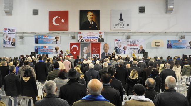 31 mart yerel seçimlerine geri dönersek Bornova'da bir başarı var. CHP olarak oylarımızda artış var. CHP olarak Bornava’yı rekor bir oyla kazandıysak, ilçe başkanımız Asım Güven’e ve o dönemli belediye başkanı Olgun Atillaya, mevcut belediye başkanımız Mustafa İduğ’a teşekkür ediyorum. Ben Bornova kongremizin partimize ilçemize hayırlı olmasını ve güç vermesini dileyerek teşekkür ediyorum.’’ dedi.