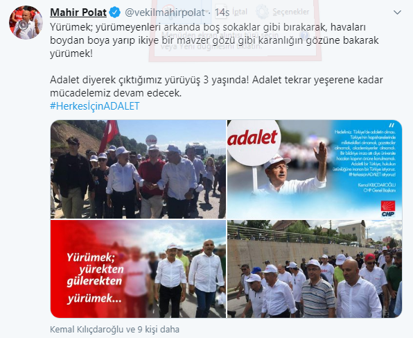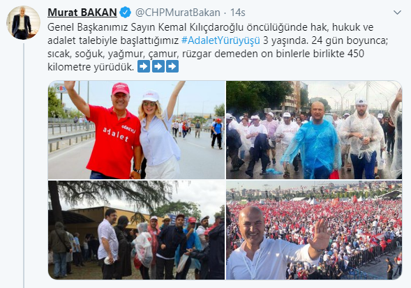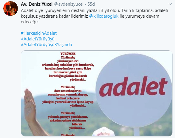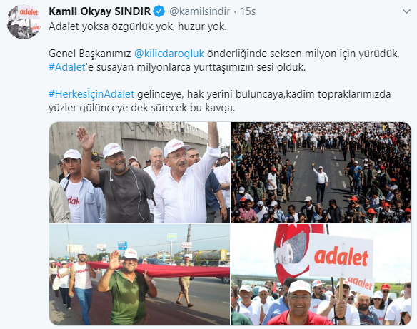 önderliğinde seksen milyon için yürüdük, #Adalet'e susayan milyonlarca yurttaşımızın sesi olduk.
