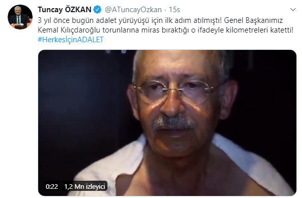 3 yıl önce bugün adalet yürüyüşü için ilk adım atılmıştı! Genel Başkanımız Kemal Kılıçdaroğlu torunlarına miras bıraktığı o ifadeyle kilometreleri katetti! #HerkesİçinADALET