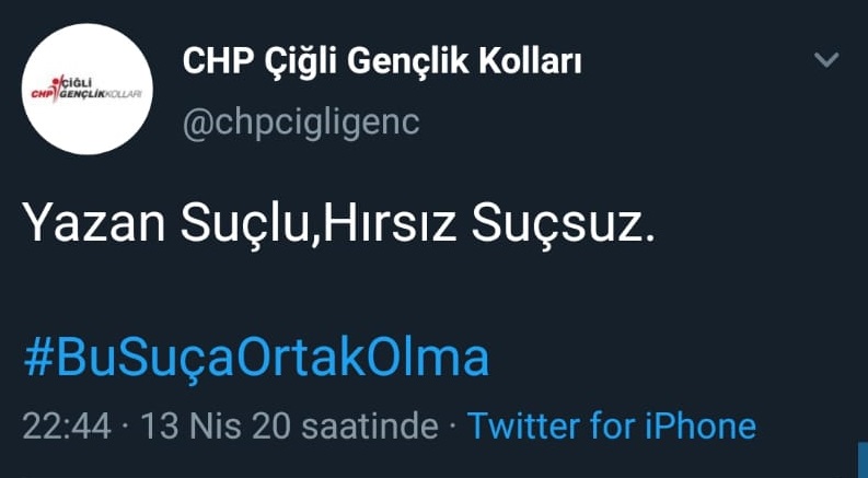 CHP Çiğli Gençlik Kollar; Yazan Suçlu, Hırsız Suçsuz.