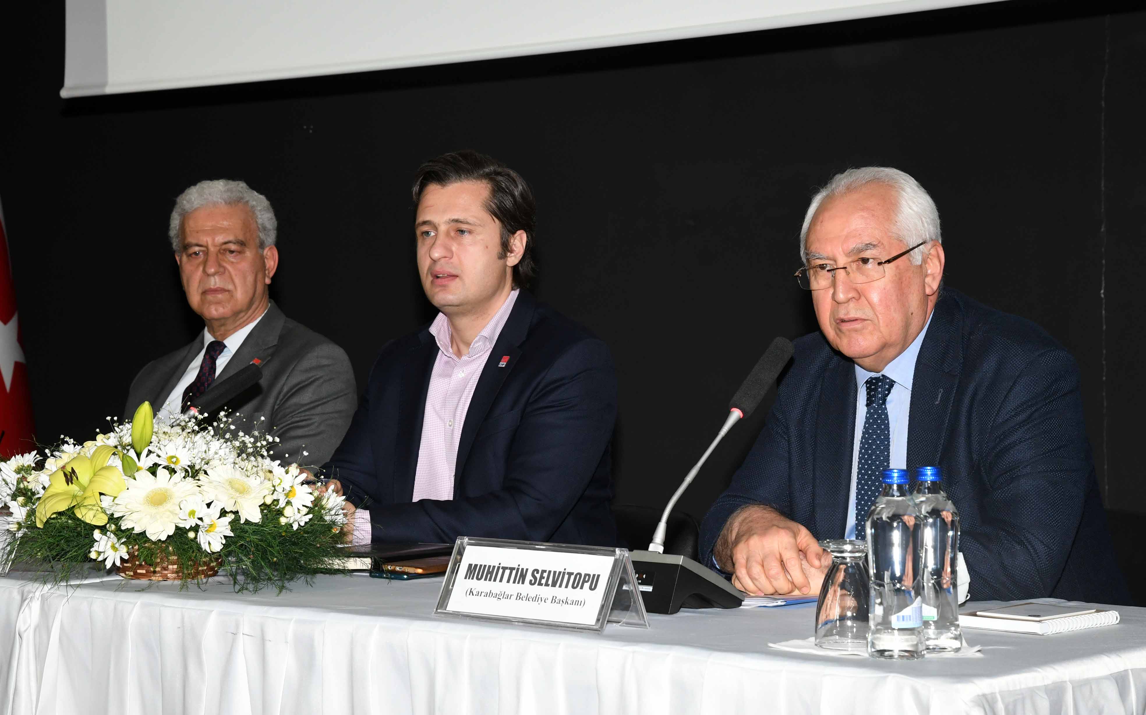 Karabağlar Belediyesi Ana Hizmet Binası'ndaki Muzaffer İzgü Konferans Salonu'ndaki buluşma saygı duruşu ve İstiklal Marşı’yla başladı. Daha sonra Karabağlar Belediye Başkanı Muhittin Selvitopu, CHP İl Başkanı Deniz Yücel ve CHP Karabağlar İlçe Başkanı Mehmet Türkbay, esnaf kesiminin talep ve önerilerini dinledi.