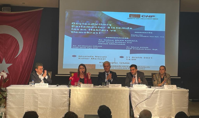 Furkan KARAKOCA/İZMİR GÜNDEMİ-Karabağlar İlçe Başkanlığı 10 aralık Dünya İnsan Hakları Günü dolayısıyla Güçlendirilmiş Parlamenter Sistemde İnsan Hakları ve Demokrasi paneli düzenledi. Mustafa Necati Kültür Merkezi’nde düzenlenen panel CHP Genel Başkan Yardımcısı Denizli Milletvekili Av. Gülizar Biçer Karaca, İzmir CHP İl Başkanı Deniz Yücel, Karabağlar Belediye Başkanı Muhittin Selvitopu CHP MYK Üye Yardımcısı AV. Ali Deman Güler ,CHP İl Hukuk komisyonu Başkanı Av. Murat Aydın, CHP İlçe Başkanı Av. Mehmet Türkbay, CHP Karabağlar İlçe Başkan Yardımcısı Murat Köse katılımlarıyla ve CHP Karabağlar İlçe Başkan Yardımcısı Serap Tak’ın moderatörlüğüyle gerçekleşti.