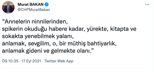 Sosyal medya hesabından açıklamalar yapan Murat Bakan, şu ifadelere yer verdi;