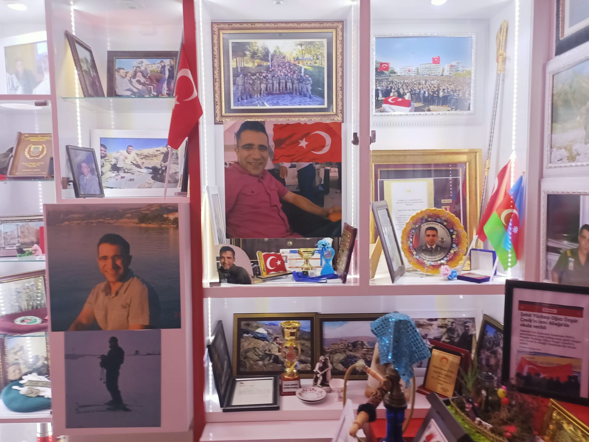 ŞEHİT BABASINDAN EVDE BİR MÜZECHP İzmir Milletvekili Aday Adayı Recep Çevik, oğlunun şehit olmasından sonra evinin bir odasını müzeye çevirdi. CHP'li Çevik,"Evimin bir odasını şehit olan olum içim müze haline getirdik. Oğlumun ölümünden sonra materyallerimiz çoğaldı. Odasını zaten düzlemiştik fakat daha sonra askeriyeden gelen eşyaları ile müze türü halinde yeniden düzenlemeye yoluna girdik. Çocuklarımda düşünüp taşındı odanın bu şekilde olmasını istedik. Odanın dizaynı için marangozlarla görüşmeye başladık. İki marangoz arkadaş kendileri gelip gönüllü olarak odanın düzenine yardımcı olmak istediklerini söylediler. Yaptılar." İfadelerine yer verdi.