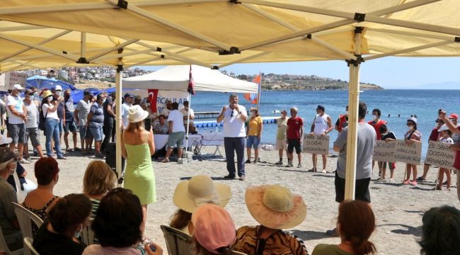 Sındır, “Başta foklar olmak üzere nesli tehlikede olan çeşitli deniz canlılarının yaşam alanının yok edilmesine, mendirekler inşa edilmesine, mavi bayraklı Akarca plajımızın doldurulmasına, kirletilmesine, ekolojinin ekonomiye yenilmesine izin vermeyeceğiz” dedi.