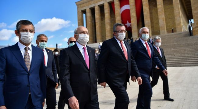 Törenlere maske takarak katılan CHP lideri, koronavirüs önlemleri nedeniyle tokalaşmadı, uzaktan selamlaştı.