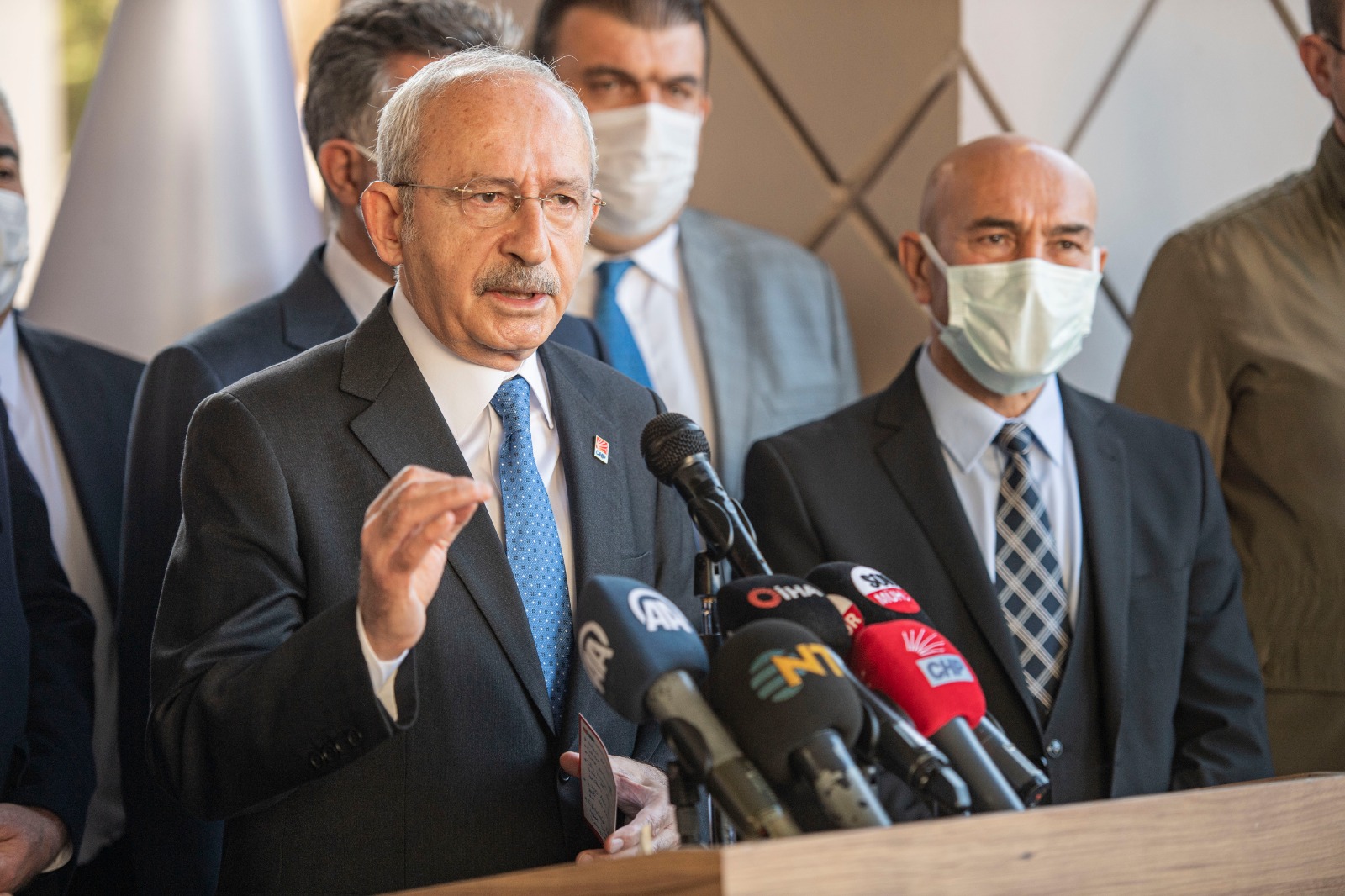 İzmir'in yaşadığı acının Türkiye'nin ortak acısı haline geldiğine dikkat çeken Kılıçdaroğlu, konuşmasını şöyle sürdürdü: "Şu çok önemli. Gerek bizim diğer belediyelerimiz gerek MHP, AK Parti ve İYİ Parti’ye ait belediyeler var. O belediyelerin de katkıları olmuştur. Merkezi hükümet de elinden geleni yapmak için gayret içine girmiştir. Şu açık ve nettir: İzmir Büyükşehir Belediyemiz ve belediye başkanlarımız burada bir tarih yazmışlardır. Hiç kimsenin en ufak ihtiyacı göz ardı edilmemiştir. Ayakkabısından tutun buzdolabına, çamaşır makinesine, televizyondan tutun kadar elektrik süpürgesine kadar bütün ihtiyaçlar belediyelerimiz tarafından karşılanmıştır. Yiyecek, içecek, giyim ihtiyacı k arşılanmıştır. Ben bütün medya organlarının huzurunda belediye başkanlarımıza bu çabaları dolayısıyla teşekkür ediyorum. Onlar 24 saat İzmirliler 'rahat etsin' diye uyumadılar. Sorun iletildiğinde sorunun giderilmesi için ellerinden gelen çabayı gösterdiler. Bundan sonraki süreçte kentsel dönüşüm konusunda da merkezi hükümet engel çıkarmadığı sürece her türlü sorunu kısa sürede çözecekler” dedi.