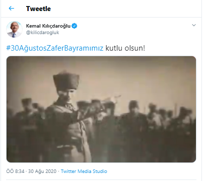 CHP Genel Başkanı kemal Kılıçdaroğlu, 30 ağustos Zafer bayramı nedeniyle sosyal medya hesabından videolu mesaj paylaştı.