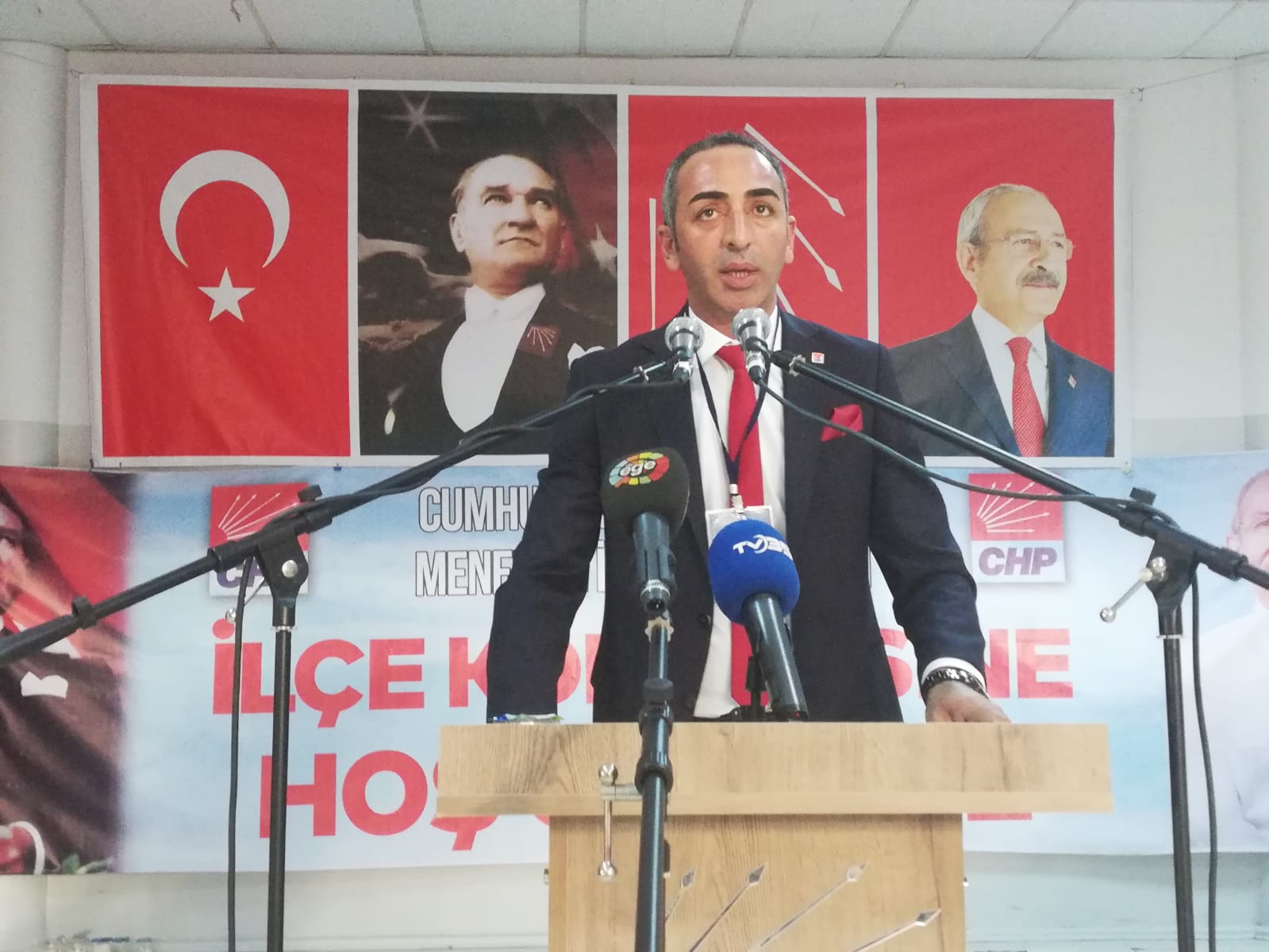 a Mandela'nın dediği gibi hep kayb etmedim, öğrendim. Önce insan olmaktan yana oldum. Ben hayatım boyunca taraf oldum. Cumhuriyet'ten, Atatürk Devrimlerinden yana taraf oldum. Mağdurdan, ezilenden, barıştan ve doğrudan tarafı oldum. CHP'nin vaad ettiği aydınlık gelecekten taraf oldum.İzmir'de ve Ankara'da partimizi temsil edecek bir makam. Ben kendimi ilçe başkanlığına hazır hissediyorum. Siz hazırsanız ben de hazırım. Değerli partililerim bugün burada yeşeren bir umudu gerçek kılmak için bir aradayız. Bu ortak umudu sizlerle birlikte hayata geçirmek için adayım. Ben arkama baktığımda anlıyorum ki birlikten her zaman güç doğuyor. Sen ben öteki demediğimiz de başarı geliyor. En çarpıcı örneği aramızda. Cumhuriyet ve CHP sevdalısı değerli ilçe başkanımız Serdar Değirmenci. Sakin denizde herkes kaptan kesilir. Kaptanın iyisi fırtınalı deniz belli olur. Kendisi Menemen'e halkını kritik bir dönemde limana ulaştıran büyük bir kılavuzdur. Belediye Başkanımız Serdar Aksoy da her daim dostum yoldaşımdır. Hepimiz yaşadık. 31 Mart seçimleri öncesi istifaları hepimiz yaşadık. Söylenenlere inat Serdar Aksoy'u başkan seçtirdik. Aday gösterilmedim ama yağmur çamur demeden eşimle kapı kapı çalıştım. O zaman Sayın Aksoy'un başkan olması ve partimin iktidarı için canımı dişime taktım. Hiç bir şey beklemeden çalıştım. Üstüme düşeni yaptım yaparım da. Sonrasında belediye başkanımız Serdar Aksoy'un ricasıyla kendisine yardımcı oldum, olurum da. Bu uyum içindeki çalışmalarımızın devam etmemesi için hiç bir neden yok. İlçemiz her rengi taşıyan Anadolu'nun dört bir yanını içinde barındıran bir mozaik. Bunu partimizin avantajı haline dönüştürmek de bizim elimizde. CHP'yi iktidar yapmak için tek bir çaremiz var. Kapı kapı sofra sofra, tezgah tezgah, tarla tarla dolaşmak. Kurtuluşun CHP iktidarında olduğunu anlatmak. Her mahallemizde bir ilçe temsilcilerimiz olsun. Her toplatımızı mahalleler de ya da sokakta yapalım. Birlikte karar verelim birlikte hareket edelim. Her kesimin örgütümüzle bir bağı olsun. Ortak akıl ve heyecanla partimiz için taş üstüne taş koymuş herkes tek vücut olsun. Örgütümüzde güven olsun. Size söz veriyorum el ele vereceğiz ve bunları birlikte yapacağız. İnadına özgürlük inadına barış diyeceğiz. Memleketimizi dağlarına bahar gelene kadar gece gündüz çalışalım. Halk için politaka yapalım, Türkiye benimle değil bizimle gurur duyacak. Söz veriyorum Menemen iktidar yürüyüşünde kilometre taşı olacak. Tüm delegelerimizin fikri hür vicdanı hür bir seçim yapacağına yürekten inanıyorum" ifadelerini kullandı.