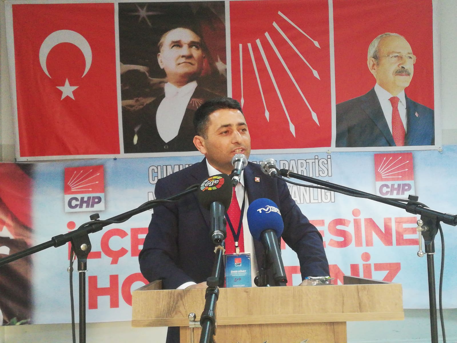 Son olarak kürsüye çıkan Ömer Güney ''Ülkemiz adı ak ama yolu karanlık bir iktidarın pençesinde. Gemide kimler var peki. Canını kanını hiçe sayarak ulusal kurtuluş mücadelesini kazanmış atalarımızın emanetçileri hepimiz varız. Ya batacak ya çıkacağız. İlk adımı atanlar zafere çok yakındır. İlk hedef Kılıçdaroğlu önderliğinde CHP'yi iktidar yapmaktır. Bunu halkımızla birlikte başaracağız. Onlar kardeşi kardeşe kırdırılar. Biz inadına kardeşlik diyoruz. Böyle bir kritik süreçte kongremizi yapıyoruz. Önemli olan parti ilkelerimize inandığımız değerlere sahip çıkmak ve süreci tamamlamak. Birlik ve beraberlik ruhumuzu kaybetmemek. İçinde olduğumuz durumun kaybedeni olmadığın biliyoruz, önemli olan yolumuzu kabul etmemek. 42 yıllık hayatımın yarısını CHP'ye verdim. Ben kendi payıma şunu söylemek istiyorum. Özel ve siyaset hayatımd