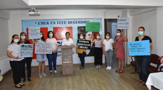 CHP Menemen İlçe Kadın Kolları Başkanı Aynur Fiçer tarafından yapılan açıklama şu şekildeydi: