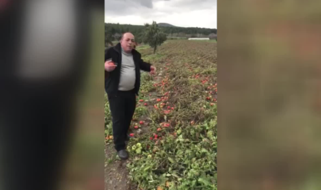 “Günah bizlere, günah. Bu insanlar üreterek batıyor. Ondan sonra ‘Çiftçi klimalı motora biniyor, çiftçi Iphone alıyor, şunu alıyor, bunu alıyor’. Burada 400 ton mal şu anda. Çürümeye terk ettik. Sayın Cumhurbaşkanım demişti ya çiftçilere, ‘Ekilmedik bir karış yer bırakmayın’ diye. Biz de sayın Cumhurbaşkanımızı dinledik. Elimizden geldiği kadar diktik, ürettik. Sonucu bu. Sayın Cumhurbaşkanım, bizi kim kurtaracak? Üreterek batıyoruz. Üreterek batmak böyle bir şey. Burası 40 dönüm, 40. 42 bin tane fide (domates fidesi) var. Domates yerinde 70 kuruş; tezgahta, markette 10 lira. Biz borcumuzu nasıl ödeyeceğiz? Satacağız malımızı mülkümüzü, ödeyeceğiz."