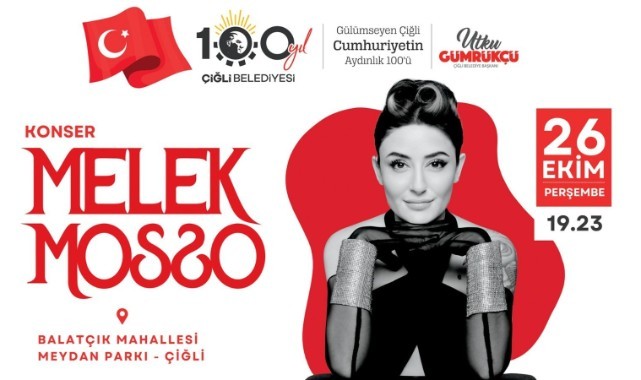 Çiğli Belediyesi, Cumhuriyetin 100. Yılı kutlamaları kapsamında bu akşam (26 Ekim) Türk Pop Müziği’nin sevilen isimlerinden Melek Mosso konserine ev sahipliği yapacak.