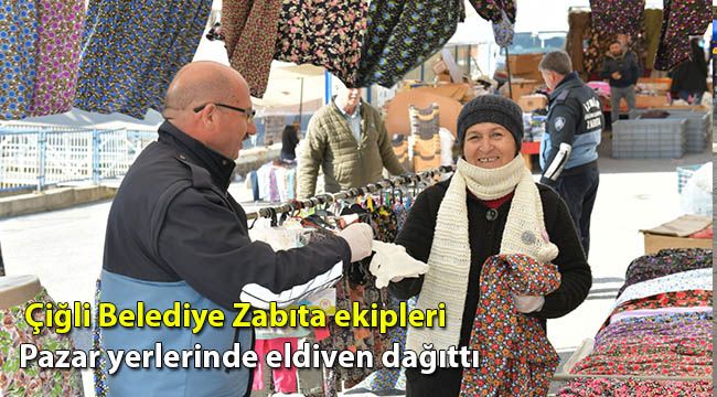 Halk sağlığını tehdit eden Koronavirüs salgınına karşı aldığı tedbirleri en üst seviyeye çıkaran Çiğli Belediye Başkanı Utku Gümrükçü, halıkı yoğun olarak bir arada bulunduğu yerler olan pazar yerlerinde bir dizi tedbirler aldı. Çiğli Belediyesi temizlik işler ekipleri pazar yerlerini kurulmadan önce dezenfektan maddelerle yıkayarak temizledi. Zabıta ekipleri ise Pazar yerlerinde hem vatandaşa hem de pazarcı esnafına alışverişlerini daha hijyen koşullarda yapmaları ve el temasından kaçınmaları için eldiven dağıttı.
