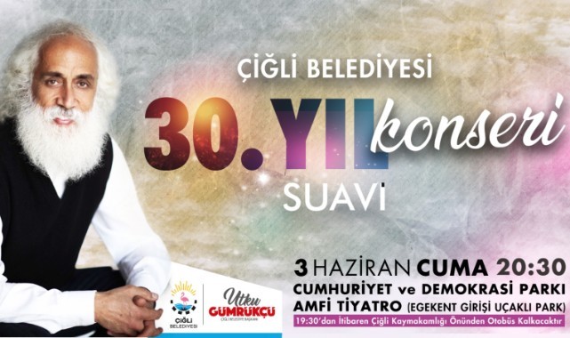 Çiğli Belediyesi Fakir Baykurt Salonu ve Fuaye Alanı’ndaki etkinliklerin ardından kutlamalar Türk müziğinin usta isimlerinden Suavi’nin saat 20:30’da Cumhuriyet ve Demokrasi Parkı Anfi Tiyatrosunda sahne alacağı konserle devam edecek.