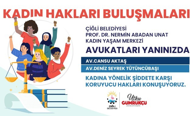 Başkan Utku Gümrükçü öncülüğünde kadınların toplumsal hayatın her alanında eşit ve güçlü şekilde yer alması adına çalışmalarını sürdüren Çiğli Belediyesi'nden bu anlamda önemli bir adım daha geldi. Kadın ve Aile Hizmetleri Müdürlüğü tarafından, Evka-2 Cemevi’nde düzenlenen Kadın Hakları Buluşmasına Prof. Dr. Nermin Abadan Unat Kadın Yaşam Merkezi'nde görevli Av. Cansu Aktaş ve Av. Deniz Seyrek Tütüncübaşı konuşmacı olarak katıldı. Yoğun katılımın olduğu söyleşide, kadınların maruz kaldığı şiddet olayları karşısında sahip oldukları haklar ve izlemesi gereken yöntemlerle ilgili bilgilendirmede bulunuldu.