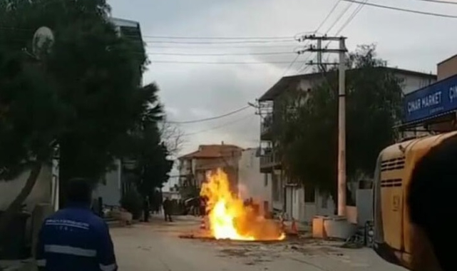 İzmir'in Çiğli ilçesinde, yağmur suyu kanalı çalışması sırasında mahalledeki bir doğal gaz borusunda hasar oluştu. Borudan çıkan gaz tutuşunca, mahallede kısa süreli panik yaşandı.