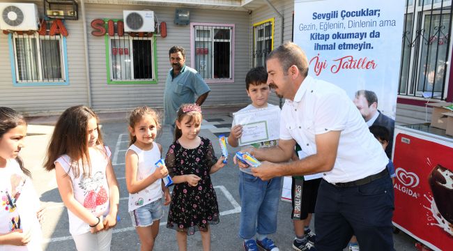 Çocukların en sevdiği yiyeceklerin başında dondurma olmasından dolayı öğrencilere böyle bir karne sürprizi yapmak istediklerini belirten Başkan Utku Gümrükçü, “Tüm öğrencilerimize güzel bir yaz tatili diliyorum. Bol bol okusunlar, dinlensinler, eğlensinler. Geleceğimiz onlara emanet ve bizler de öğrencilerimiz için önemli çalışmalarla onların yanında olacağız. Bugün de onlara hoş bir sürpriz yaptık ve dondurma dağıttık” diye konuştu.