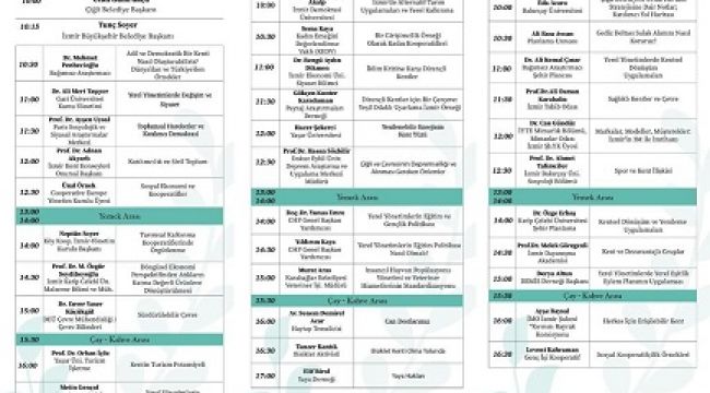 2 Ağustos Cuma günü saat 10.00’da açılış konuşmasını İzmir Büyükşehir Belediye Başkanı Tunç Soyer’in yapacağı sempozyumda 33 uzman ve akademisyen üç gün boyunca saat 10.00 – 17.30 arasında sunum yapacak. Çiğli’de ilk kez düzenlenecek kent sempozyumunda, kentsel dönüşüm, sürdürülebilir çevre, yenilenebilir enerji, Gediz Deltası ekolojisi, kooperatifçilik, kültür, sanat, eğitim ve spor gibi başlıklar altında bildiriler sunulacak.