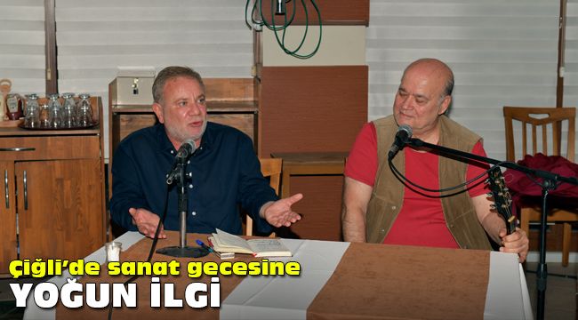 Çiğlili sanatseverlerin yoğun ilgi gösterdiği sanat gecesi Akvaryum Kafe’de gerçekleştirildi. Etkinlikte şair Cezmi Ersöz ve müzisyen Vedat Sakman sahne aldı. Değerli sanatçılar seslendirdikleri birbirinden değerli eserleriyle sanatseverlere unutulmaz bir gece yaşattı.