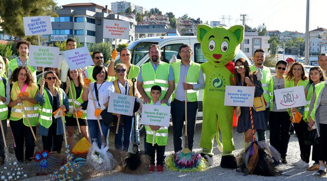 Çiğli Belediyesi’nin 21 Eylül Dünya Temizlik Günü dolayısıyla düzenlemiş olduğu çevre hareketiyle vatandaşları bilinçlendirmek amacıyla çocuklar, sivil toplum kuruluşları, mahalle muhtarları ve çok sayıda vatandaş sokaklardaki çöpleri topladı.