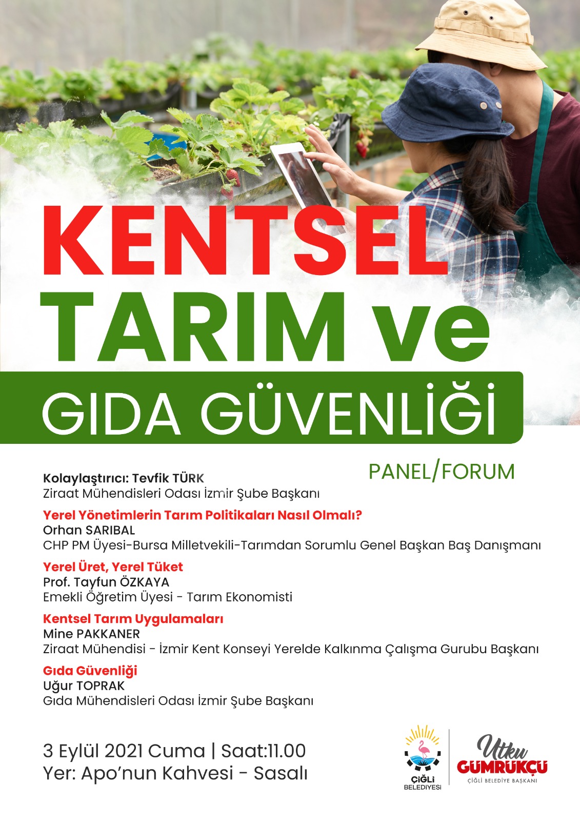 İzmir'in en önemli tarım merkezlerinden olan Sasalı'da 3 Eylül Cuma günü düzenlenecek olan "Kentsel Tarım ve Gıda Güvenliği" paneline CHP Bursa Milletvekili, PM Üyesi ve Tarımdan Sorumlu Genel Başkan Baş Danışmanı Orhan Sarıbal, Tarım Ekonomisti Prof. Dr. Tayfun Özkaya, İzmir Kent Konseyi Yerelde Kalkınma Çalışma Grubu Başkanı Mine Pakkaner ve Gıda Mühendisleri Odası İzmir Şube Başkanı Uğur Toprak konuşmacı olarak katılacak. Panelin moderatörlüğünü Ziraat Mühendisleri Odası İzmir Şube Başkanı Tevfik Türk yapacak.