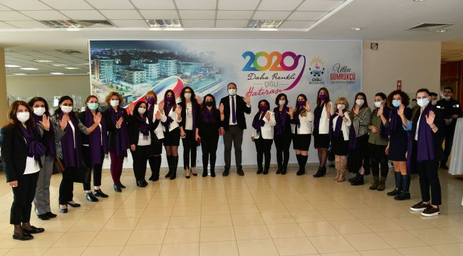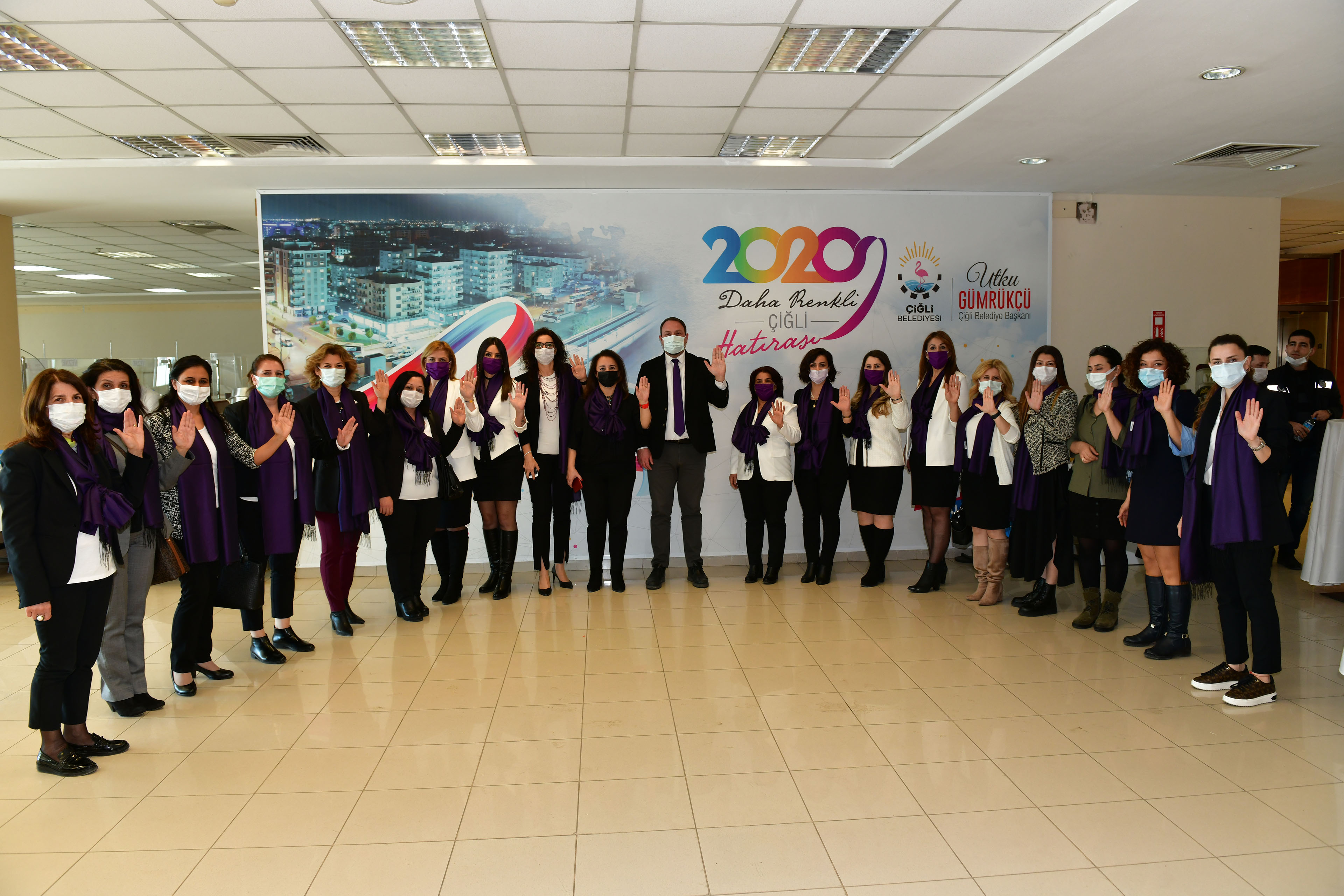 Toplumsal cinsiyet eşitliği ve kadınların istihdama katkısıanlamında farkındalık yaratan hizmet ve projelerin hayata geçirildiği Çiğli’den, uluslararası mecrada sürdürülen “ChooseToChallange” kampanyasına geniş katılımlı destek geldi. Başkan utku gümrükçü mor kravat, kadın belediye başkan yardımcıları, kadın meclis üyeleri, kadın müdürler ve muhtarlar ise mor şal takıp, sol ellerini kaldırarak çektirdikleri toplu fotoğraf ile “Eşitsizliğe ve cinsiyet temelli ön yargılara son.Eşitlik için buradayız” mesajı verdi.