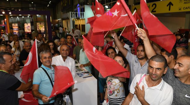 Kapılarını 87. kez açan İzmir Enternasyonal Fuarında Çiğli Belediyesi standında dağıtılan Türk bayrakları adeta kapışılıyor. Çiğli Belediye Başkanı Hasan Arslan, Türk bayraklarını bizzat dağıtıyor. Başkan Arslan, “Çiğli’de yaşayan ve yaşamayan çok sayıda yurttaşımız belediyemiz standına geliyor. Hem belediyemizi anlatıyoruz hem de fuarın sıcak atmosferini birlikte paylaşmış oluyoruz. Geçen yıl olduğu gibi bu yıl da türk bayrağı dağıtıyoruz. Adeta kapışılıyor. Standımızın gördüğü ilgiden memnununuz” dedi.