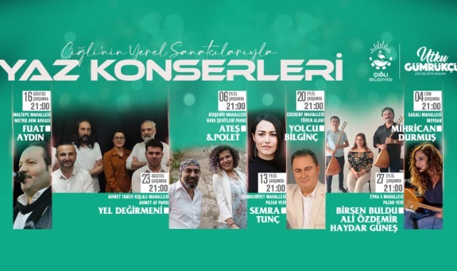 Çiğli Belediyesi, 16 Ağustos - 4 Ekim tarihleri arasında Çiğli’nin yerel sanatçıların sahne alacağı birbirinden eğlenceli yaz konserlerine ev sahipliği yapacak.