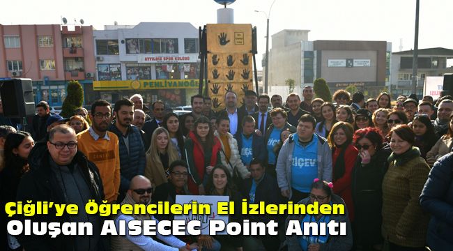 Çiğli Belediyesi tarafından AIESEC değişim programıyla gelen öğrencilerin el izi ve ülkelerinden getirdikleri taşlarla süslenmiş AIESEC Point Anıtı’nın açılışı Cumhuriyet ve Demokrasi Parkı’nda yapılan törenle gerçekleşti. Cumhuriyetin 97. kuruluş yıl dönümüne ithafen 97 el izinden oluşan anıtın açılışına Çiğli Belediye Başkanı Utku Gümrükçü, meclis üyeleri, muhtarlar, bürokratlar, sivil toplum kuruluşlarının temsilcileri, Lozan Mübadeleleri Ege Vakfı temsilcileri, Protestan Baptist Kiliseleri Derneği Başkanı Pastör Ertan Çevik, Menemen Protestan Baptist Kilisesi Derneği Başkanı Pastör Erol Kaya, öğrenciler ve öğrencileri misafir eden aileler katıldı.
