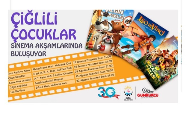 Çiğli'de Sinema Akşamları BaşlıyorÇiğli Belediyesi, çocuklara eğlenceli bir yaz tatili yaşatmak amacıyla birbirinden güzel filmlerin yer alacağı Sinema Akşamlarına ev sahipliği yapacak.