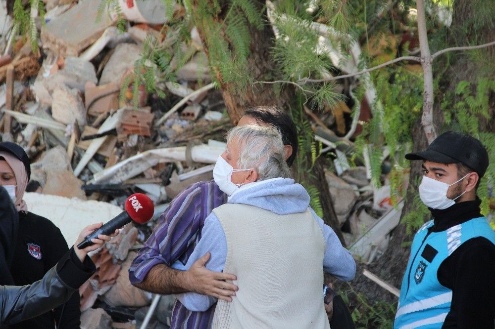Kızından haber alan Bekir Dereli de büyük mutluluk yaşadı. Dereli, "Enkaz altında 5 kişi var. Kızımla birlikte 4 torunum var. Hepsi aynı yerde ve sağlıkları yerinde. Çok mutluyum, çok. Allah onları bize bağışladı. Melek onlar melek! Hamdolsun Allah'ım sana, şükürler olsun. İki dakika önce seslerini duymuşlar. İçeriye girenler çok iyi olduğunu söyledi. Evlatlarıyla bir arada beraberlermiş. İkinci kattalar" diye konuştu.