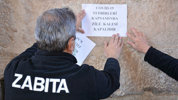 Tokat'ın Zile ilçesinde, koronavirüs vakalarının artması sonucu parklar ve tarihi Zile Kalesi, şerit çekilerek kapatıldı.
