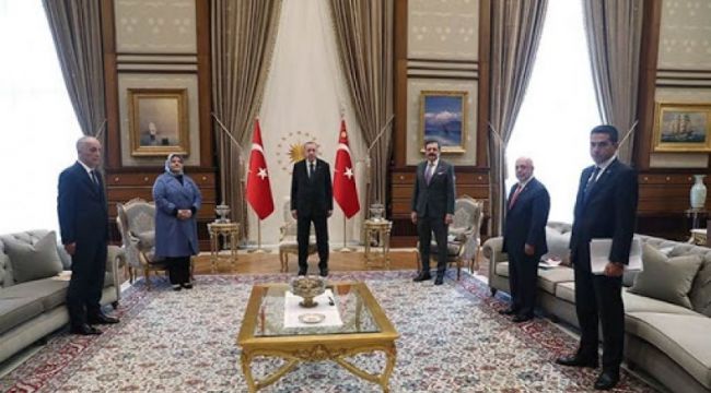 Cumhurbaşkanı Recep Tayyip Erdoğan, TÜRK-İŞ Başkanı Ergün Atalay, TOBB Başkanı Rifat Hisarcıklıoğlu, Türkiye İşveren Sendikaları Konfederasyonu (TİSK) Başkanı Özgür Burak Akkol ve HAK-İŞ Başkanı Mahmut Arslan’ı dün akşam üzeri kabul etti. İki saate yakın süren görüşmeye Aile Çalışma ve Sosyal Hizmetler Bakanı Zehra Zümrüt Selçuk da katıldı.
