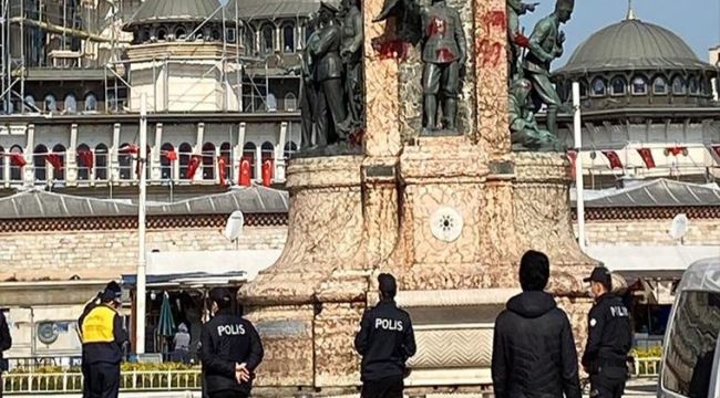 Cumhuriyet'in haberine göre İstanbul'un simgelerinden Taksim Meydanı'ndaki Cumhuriyet Anıtı'na kırmızı boya atıldığı görüldü.