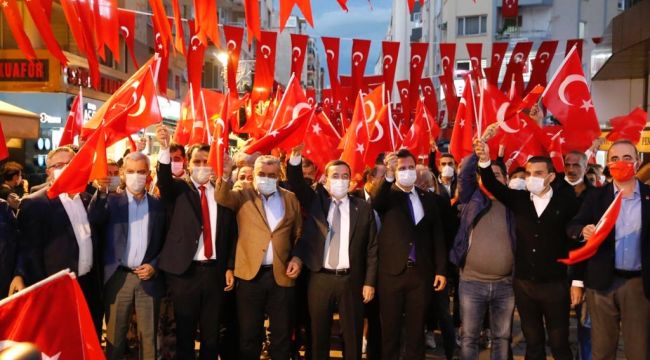 Abdül Batur: Yolumuz Cumhuriyet, Pusulamız AtatürkCumhuriyet Bayramı coşkusunun doyasıya yaşandığı yürüyüşte, pandemi kuralları sıkı bir şekilde uygulandı. Kortej Cumhuriyet Meydanı’na ulaştığında zeybek ekibi Ege yöresi oyunlarından oluşan gösterileriyle büyük alkış aldı. Gösterinin ardından bir konuşma gerçekleştiren Konak Belediye Başkanı Abdül Batur, “Sizleri Cumhuriyetin ve Atatürk sevgimizin coşkusuyla selamlıyorum” sözleri ile başladığı konuşmasında Milli bayramların önemini bir kez daha hatırlattı. Mustafa Kemal Atatürk’ü gelecek nesillere anlatmaya ve Ata’nın emaneti Cumhuriyeti korumaya devam edeceklerini vurgulayan Başkan Batur şöyle konuştu: