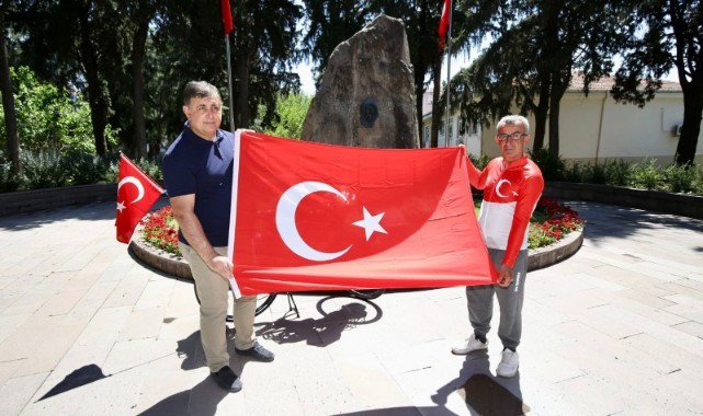 Tura ilişkin duygu ve düşüncelerini aktaran Kotluk, şu ifadeleri kullandı: “Cumhuriyet’imizin temelinin atıldığı Sivas’tan Ulu Önderimizin Annesi Zübeyde Hanım’ın mezarına kadar bisiklet sürmek benim için maneviyatı çok önemli bir etkinlik oldu. 13 günün sonunda Türk Bayrağı’mızı sağ salim buraya getirip Belediye Başkanı’mız sayın Dr. Cemil Tugay’a teslim etmenin onurunu yaşıyorum. Bana destek olan herkese sonsuz teşekkürlerimi sunuyorum. Amacım bu vatanın kolay kazanılmadığını yeni nesile aktarmak. Ömrüm yettiğince bunu seve seve yapmaya devam edeceğim. Bir vatan sevdalısı olarak Gazi Mustafa Kemal Atatürk ve aziz şehitlerimize bir minnet borcum var; o borç ödenemez, ödeyemeyiz.” Kotluk yolculuk esnasında geçtiği bölgelerdeki insanların kendisine çok destek olduğunu, bu sayede çok güzel anılar biriktirdiğini de açıklamasına ekledi.TUGAY’DAN TEŞEKKÜR