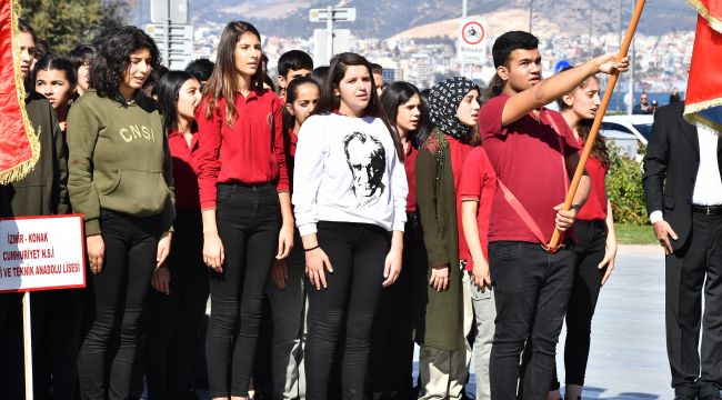 Törene İzmir Valisi Erol Ayyıldız, Ege Ordusu ve Garnizon Komutanı Orgeneral Abdullah Recep, İzmir Büyükşehir Belediye Başkanı Aziz Kocaoğlu, İzmir Milletvekilleri Tacettin Bayır, Hamza Dağ, Alpay Özalan, gaziler ve vatandaşlar katıldı. Saygı duruşu ve İstiklal Marşı’nın ardından Atatürk Anıtı’na çelenkler konuldu.