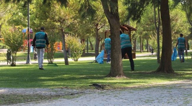 Denetimli serbestlikten faydalanan 80 hükümlü, Bornova Aşık Veysel Rekreasyon Alanı'nın temizliğini yaptı.