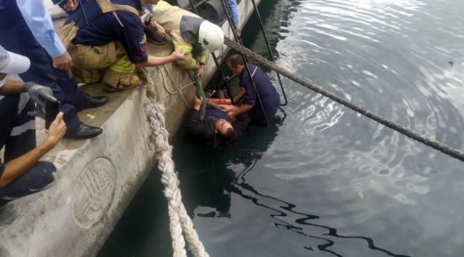 Olay yerine gelen itfaiye ekipleri denizdeki adamı gemi halatına sararak vatandaşların da yardımı ile sudan çıkardı.