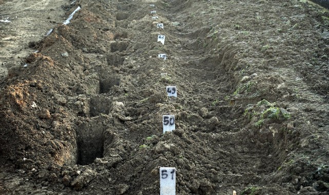 Cenazeler işlemlerin hızlı yapılabilmesi ve karışıklığı önlemek için mezar taşlarına isim yerine numara veriliyor.Farklı şehirlerde defin yapmak isteyenlere ise cenazeleri teslim ediliyor. Deprem bölgesine farklı şehirlerden gönderilen mobil gasilhaneler de bu merkezden talep edilen ilçelere gönderilecek. (DHA)