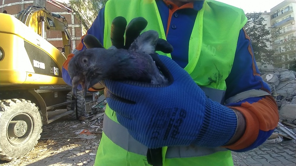 İzmir'in Seferihisar ilçesinde meydana gelen 6.6 büyüklüğündeki deprem nedeniyle Bayraklı ilçesinde bulunan Doğanlar Apartmanı enkaza döndü. Arama kurtarma ekiplerinin çalışmalarının devam ettiği enkazın altında kalan bir güvercin de kurtarıldı. Enkaz altından çıkarılan güvercinin gagasına sakız yapıştığını fark eden AFAD ekipleri, sakızı çıkarmak için çaba harcadı. Gagasından kazınarak sakızın çıkarılmasının ardından oldukça bitkin düşen güvercine şırıngayla su ve mama verilerek hayata tutunması sağlandı. Durumu iyi olan güvercin bakıma alındı.