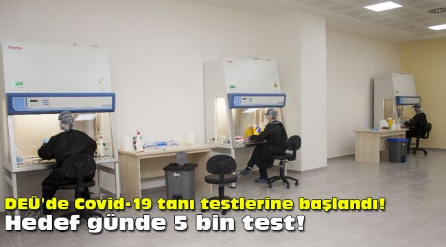 Sağlık Bakanlığının Türkiye'de yapılan korona virüs (Covid-19) test sayısını artırmak amacıyla başlattığı çalışmalar kapsamında; Türkiye Sağlık Enstitüleri Başkanlığı (TÜSEB) ile Dokuz Eylül Üniversitesi (DEÜ) Bioİzmir Uygulama ve Araştırma Merkezinde kurulan Tanı Merkezi Laboratuvarı, ilk testlerine başladı. İzmir İl Sağlık Müdürlüğünden gelen numunelerin gerçek zamanlı PCR teknolojisi kullanılarak analiz edildiğini kaydeden DEÜ Rektör Prof. Dr. Nükhet Hotar, "Merkezimizde ilk gün 500 numunenin analizi yapıldı. Bu sayıyı kısa zamanda 5 bine çıkarmayı hedefliyoruz. Bu zorlu süreçte de üniversite olarak üzerimize düşen sorumlulukları yerine getirmeye devam edeceğiz" dedi.