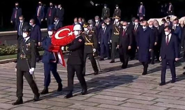 29 Ekim Cumhuriyet Bayramı törenlerinin Ankara'daki ilk durağı Anıtkabir'di. Cumhurbaşkanı Erdoğan başkanlığındaki devlet erkanı, Aslanlı Yol'dan yürüdükten sonra Atatürk'ün mozolesine çelenk bıraktı.