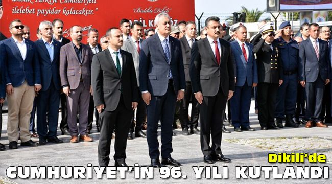 Cumhuriyet’in 96. yaşı kutlamaları kapsamında Dikili Belediye Başkanı Adil Kırgöz, Atatürk Meydanı'nda düzenlenen kutlama törenine katıldı. Törende Atatürk heykeline çelenk bırakan Başkan Kırgöz ardından Dikili Erdal İnönü Stadyumu'nda ki resmi kutlamalara katıldı.